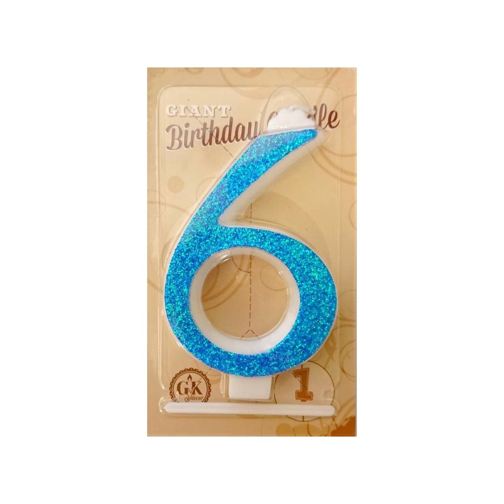 Svíčka velká modrá číslo 6 ♡