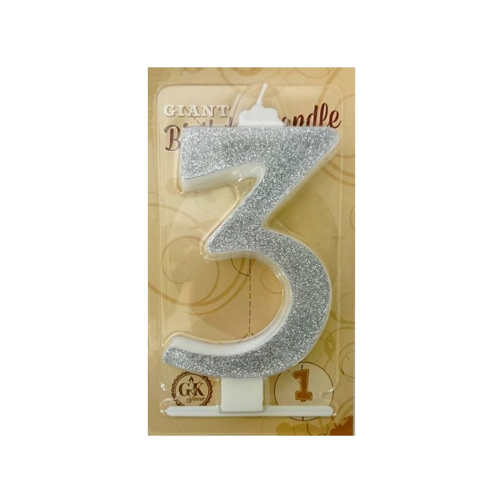 Svíčka velká stříbrná číslo 3 ▹