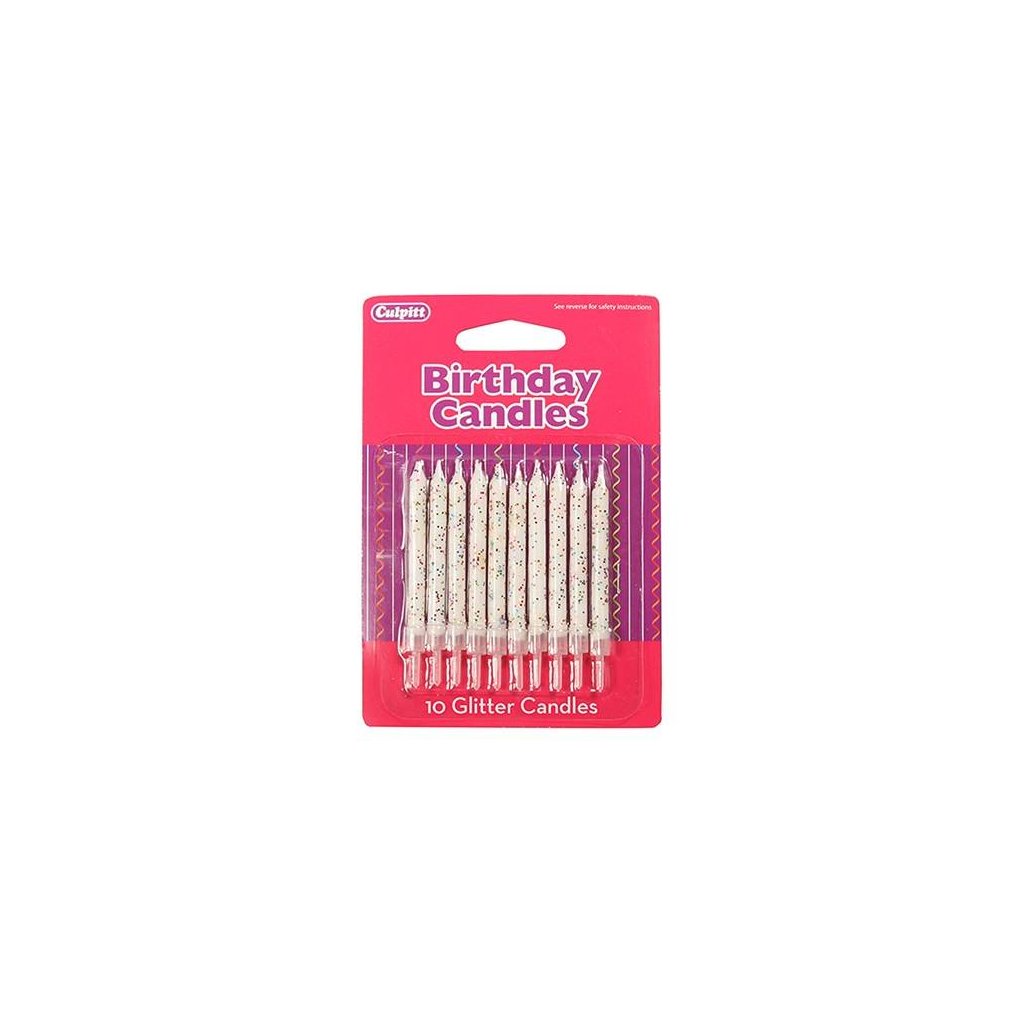 Culpitt bílé svíčky s glitry na dort, 10 ks v balení.Doplňkové parametry