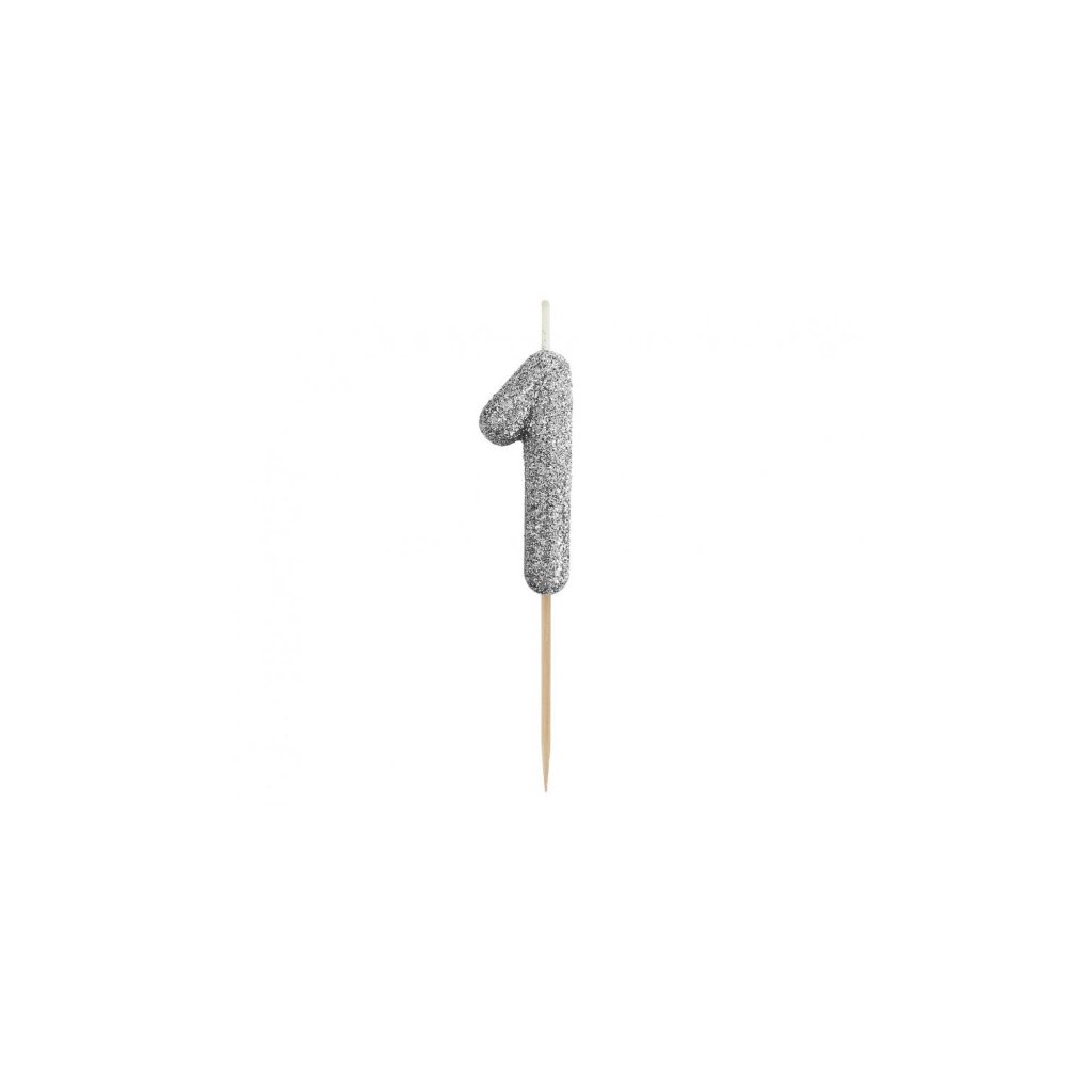 Dortová svíčka číslo 1 - třpytivá černo stříbrná, 11 x 3,5 cm /BP