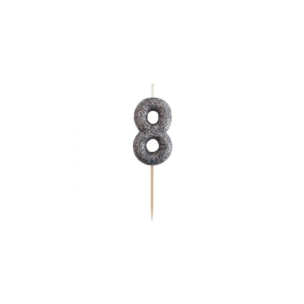 Dortová svíčka číslo 8 - třpytivá černo stříbrná, 11 x 3,5 cm /BP