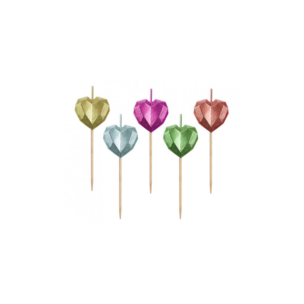 Barva: vícebarevná Vzor: srdce Výška svíček: cca 4,5 cm Celková výška (s tyčí): cca 7 cm Počet kusů v balení: 5Doplňkové parametry
