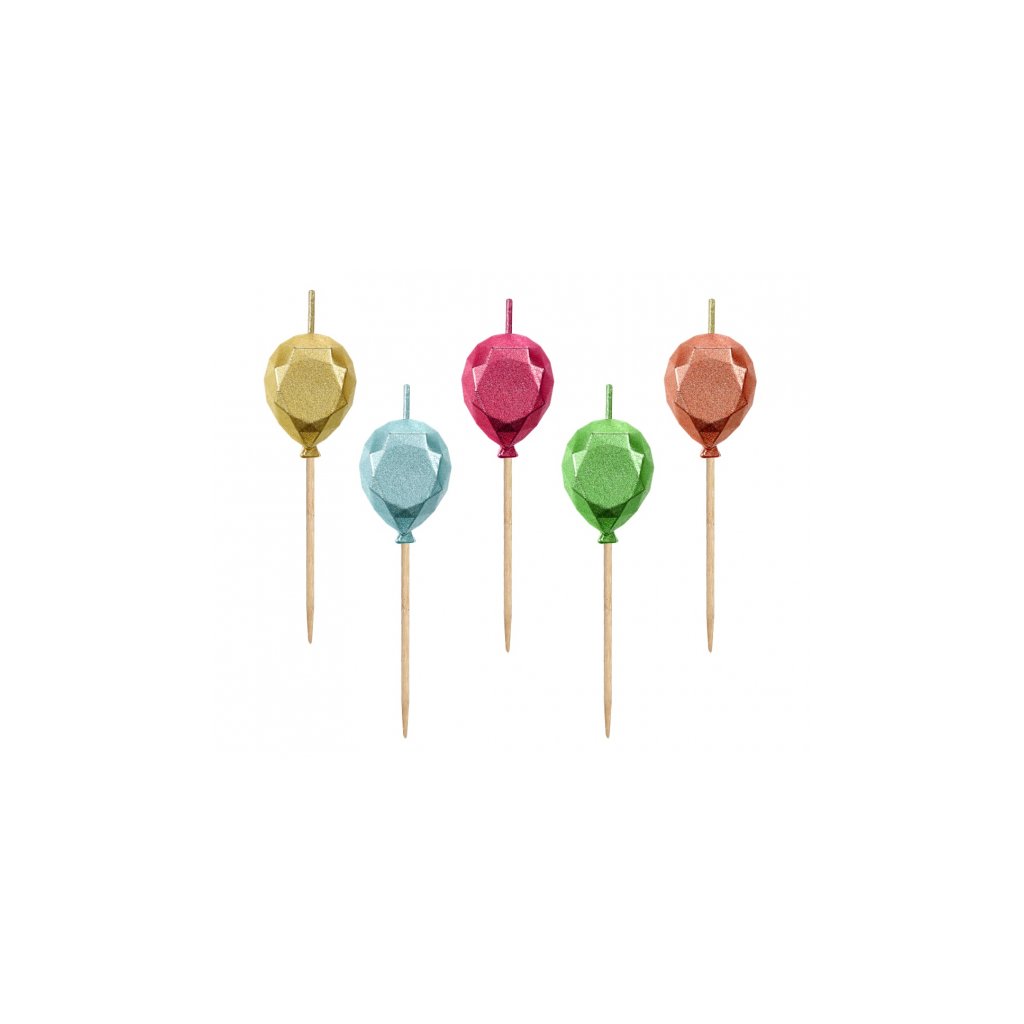 Barva: vícebarevná Vzor: balónky Výška svíček: cca 4,5 cm Celková výška (s tyčí): cca 7 cm Počet kusů v balení: 5Doplňkové parametry
