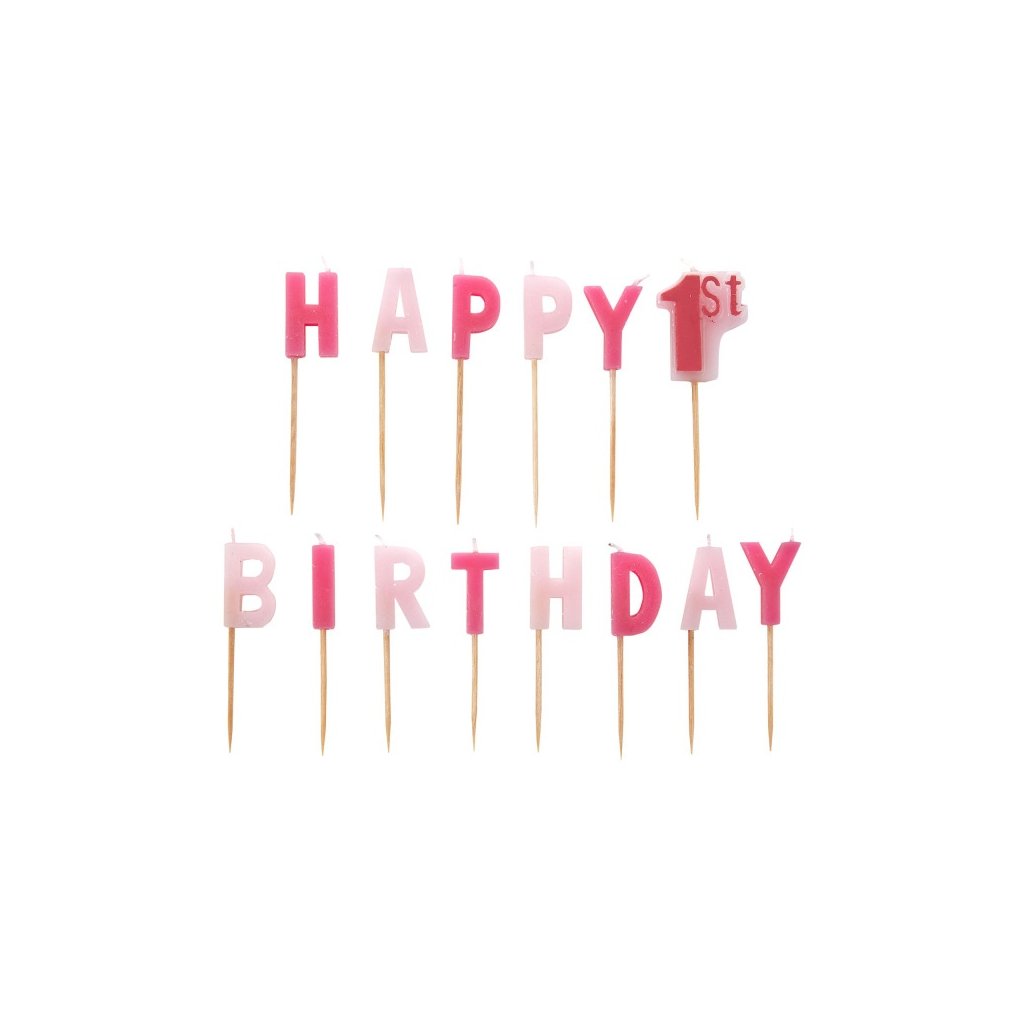 Dortové svíčky růžové nápis happy 1st birthday 14 ks /BP