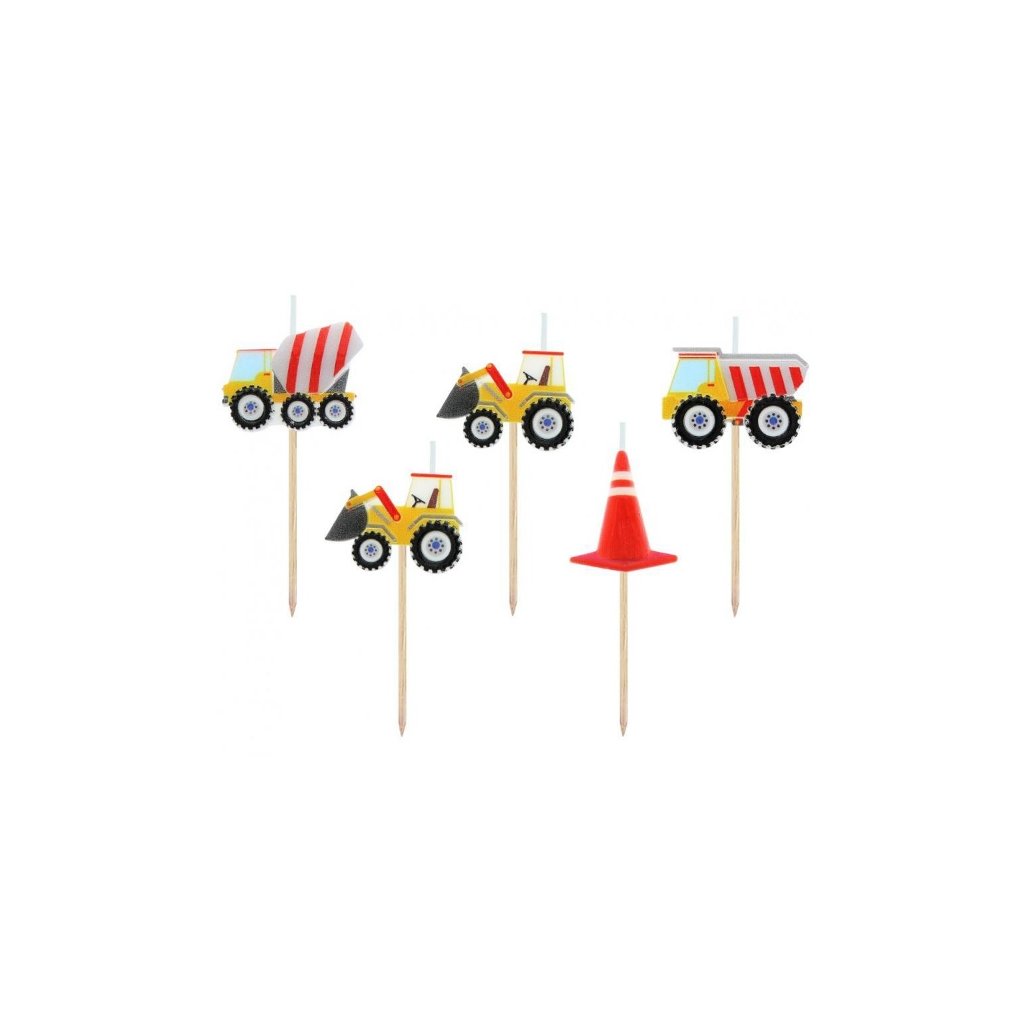 Design: stavební vozidla Výška svíčky: 3 cm Celková výška (s tyčkou): 7 cm Počet kusů v balení: 5Doplňkové parametry