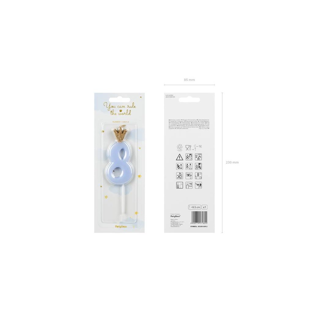 PartyDeco svíčka malá modrá s korunkou číslo 8 ♡