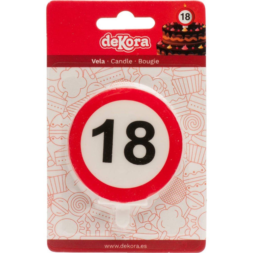 Cukrářské potřeby a suroviny pro sladké pečení.Produkt pro domácí cukráře: Svíčka na dort 6,3cm dopravní značka číslo 18 - Dekora ,
