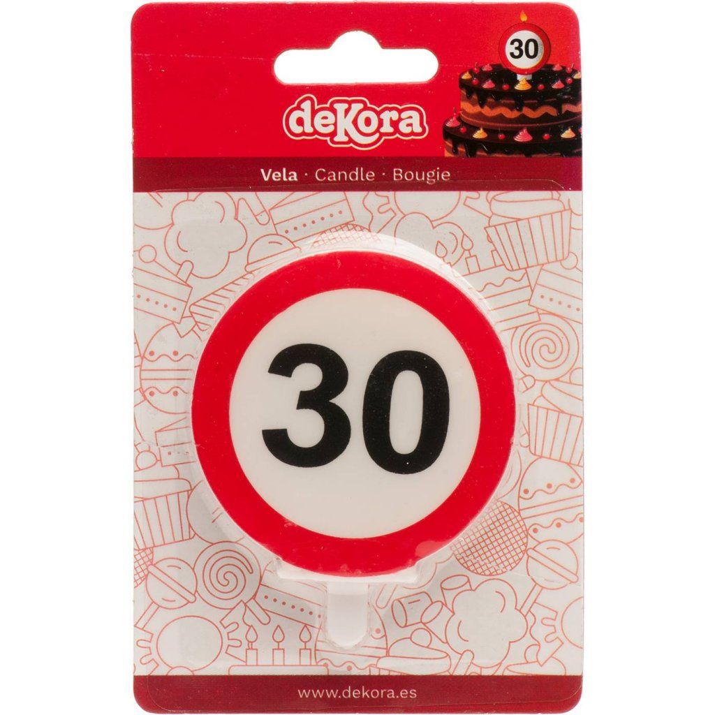 Cukrářské potřeby a suroviny pro sladké pečení.Produkt pro domácí cukráře: Svíčka na dort 6,3cm dopravní značka číslo 30 - Dekora ,