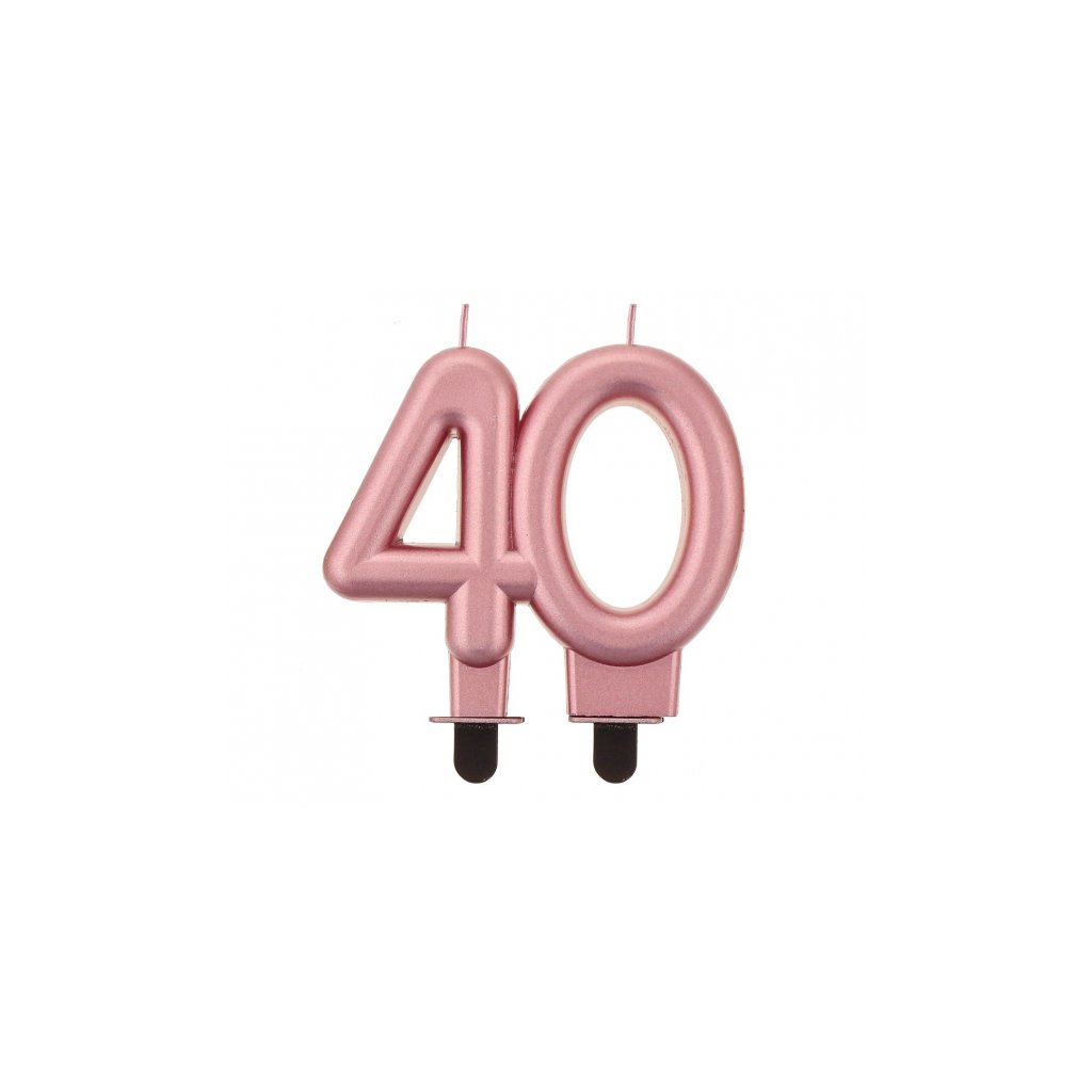 Narozeninová svíčka na dort. Svíčka ve tvaru čísla 40. Barva: metalická rosegold. Výška: 8 cm Balení: 1 ks.Doplňkové parametry
