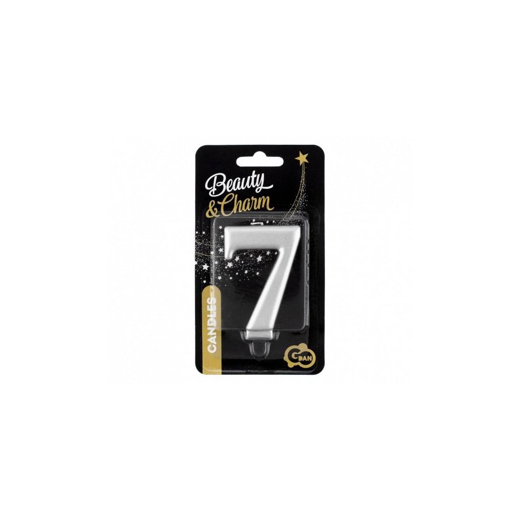 Svíčka narozeninová číslice 7 metalická stříbrná 8 cm /BP
