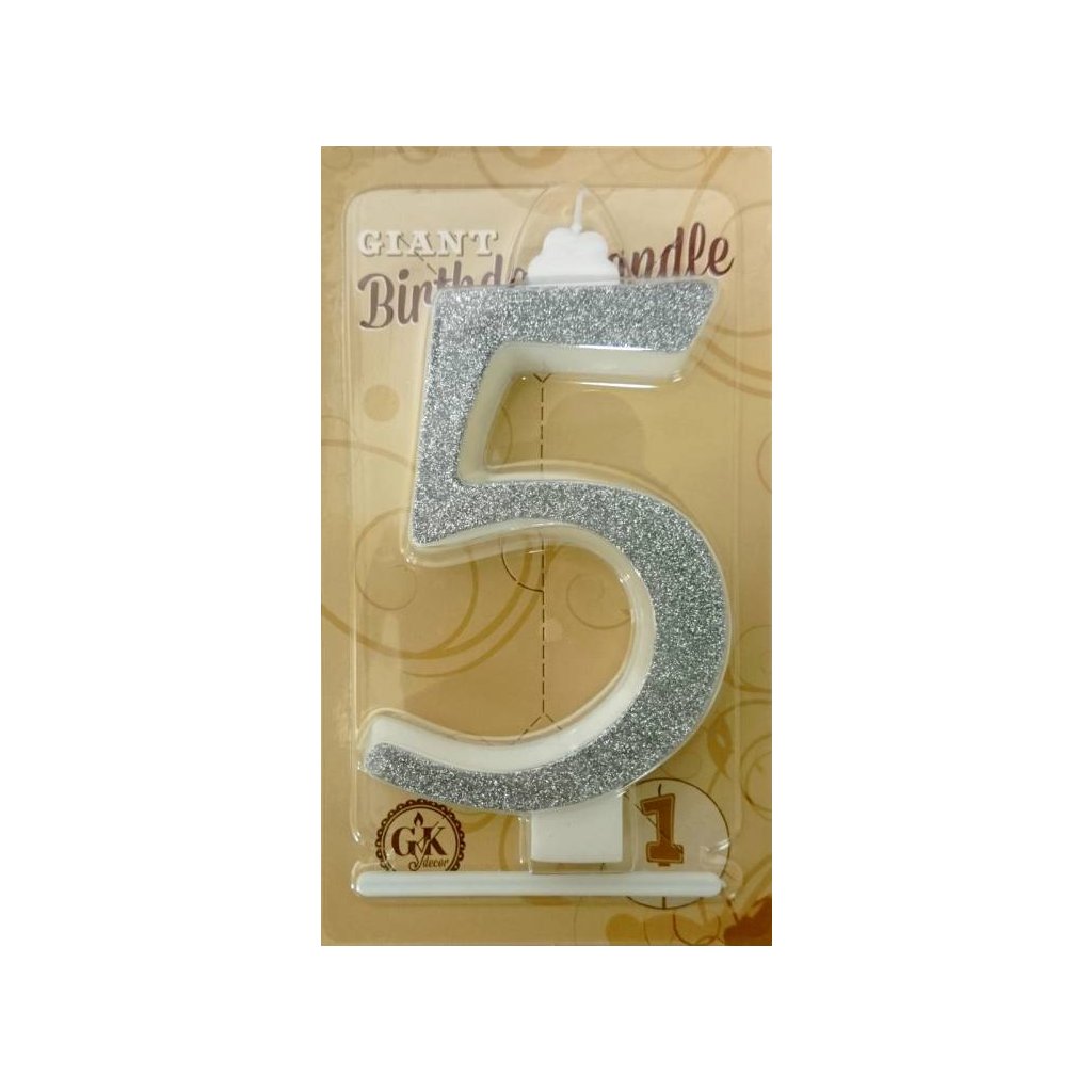 Svíčka velká stříbrná číslo 5 ▹