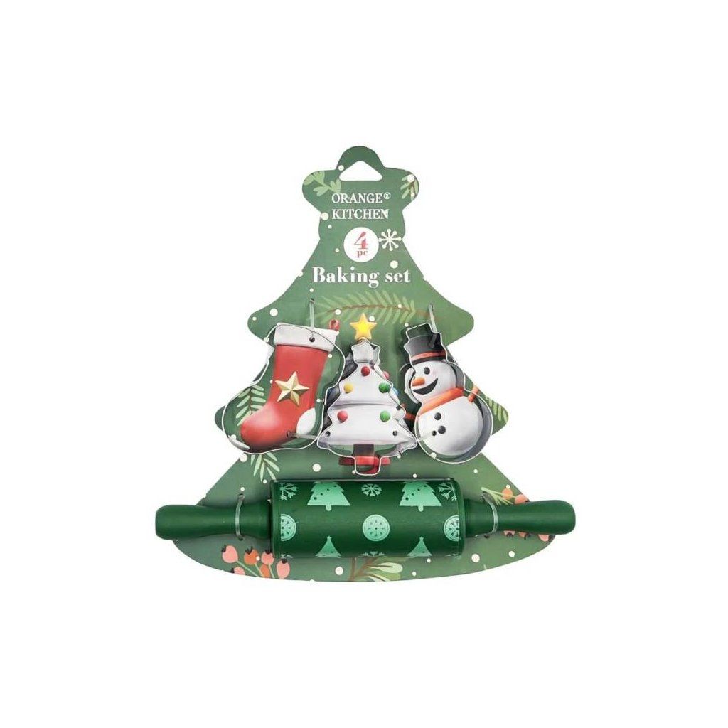 Cukrářská sada vykrajovátek a válečku zelená s vánočním motivem (4 ks) ▹