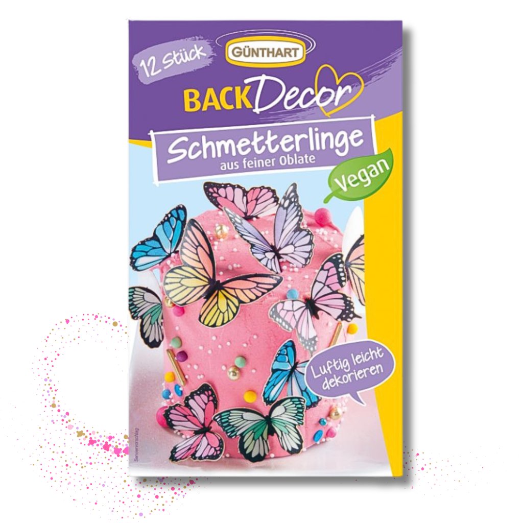 Motýlci z jedlého papíru Günthart jsou krásná a lehká dekorace, se kterou snadno proměníte každý dort, cupcake nebo zákusek v originální slavnostní výtvor. Díky realistickému tvaru a sytým barvám působí na dezertech velmi atraktivně a navodí romantickou i hravou atmosféru. Praktické balení o hmotnosti 5 g (℮) je ideální pro zdobení slavnostních příležitostí, jako jsou svatby, narozeniny či rodinné oslavy.
