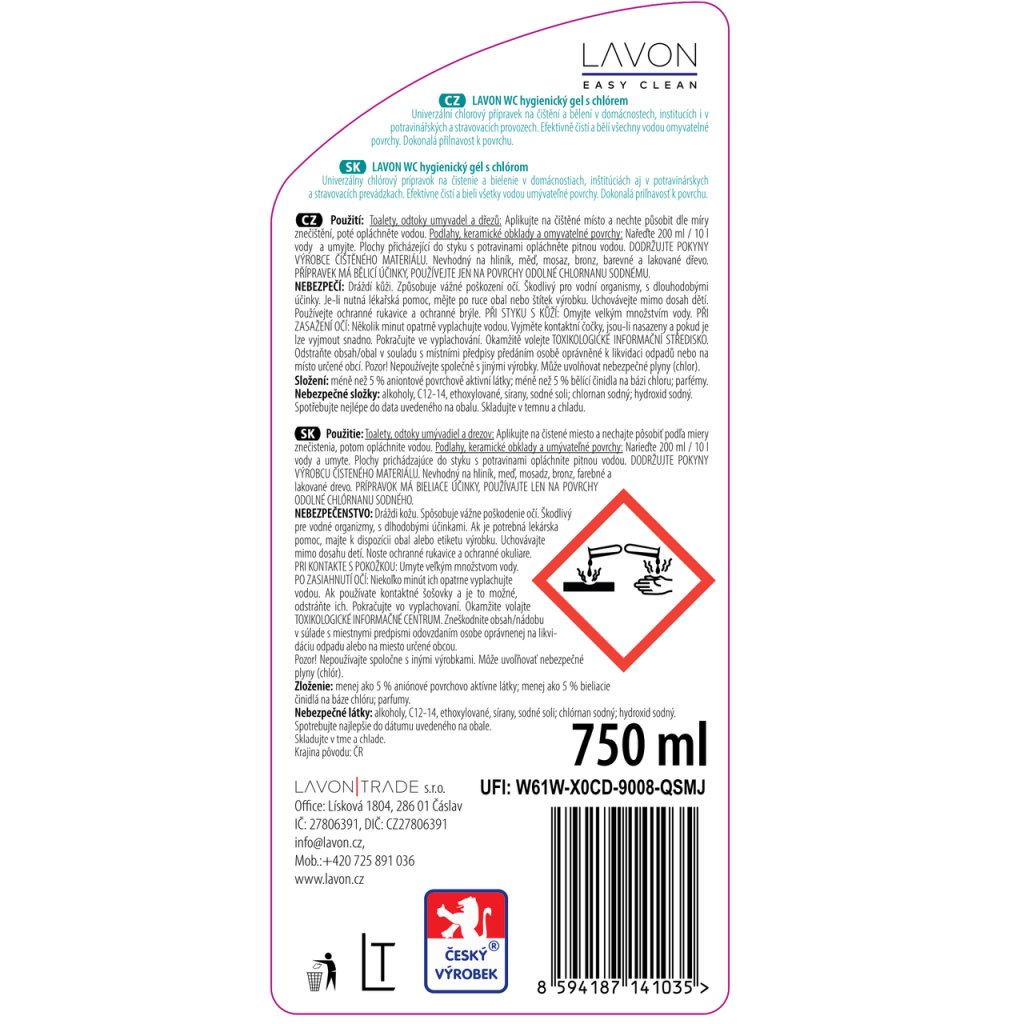 LAVON WC gel s chlórem 750 ml