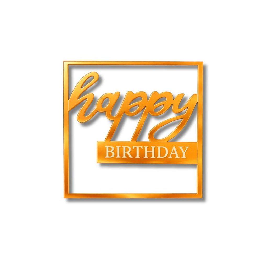 Plastová dekorace na dort Happy Birthday ve čtverci oranžová (bez zápichu) ▹