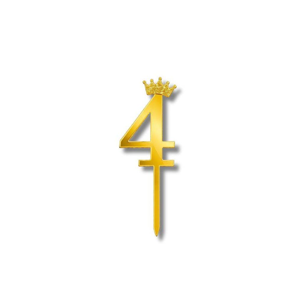 Zápich do dortu číslo 4 s korunkou zlaté ▹