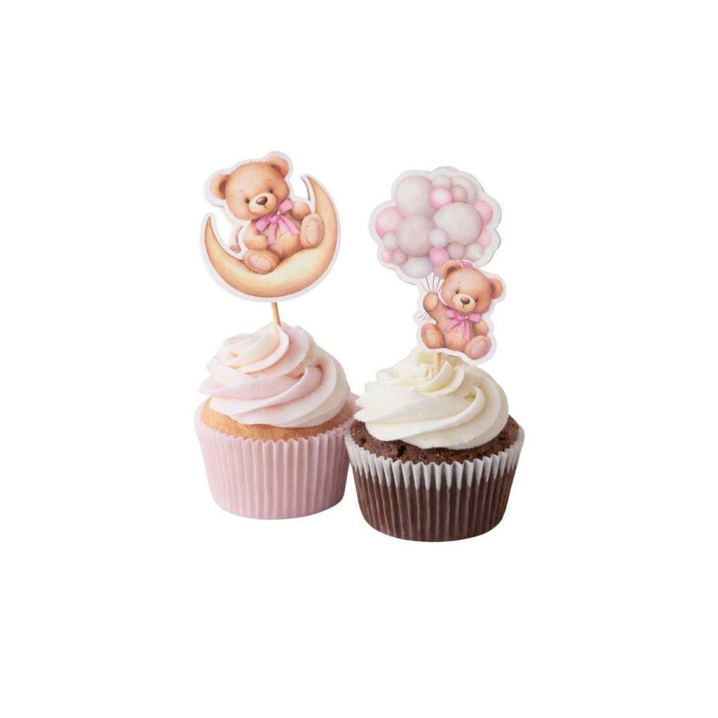 Zápich do dortu Medvídci s růžovou mašlí (6 ks) ▹
