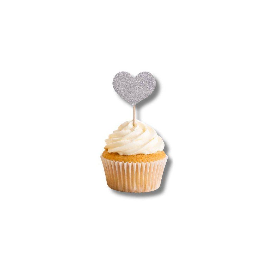 Zápich do dortu Srdíčka stříbrná (12 ks) ▹