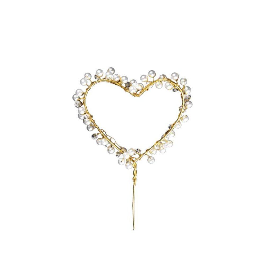 Zápich do dortu zlatý Srdce s bílými perlami ▹
