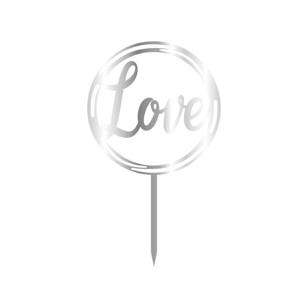 Cesil Zapichovací plastová dekorace stříbrná Love v kruhu ♡