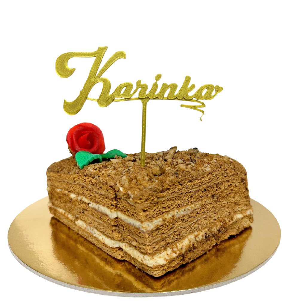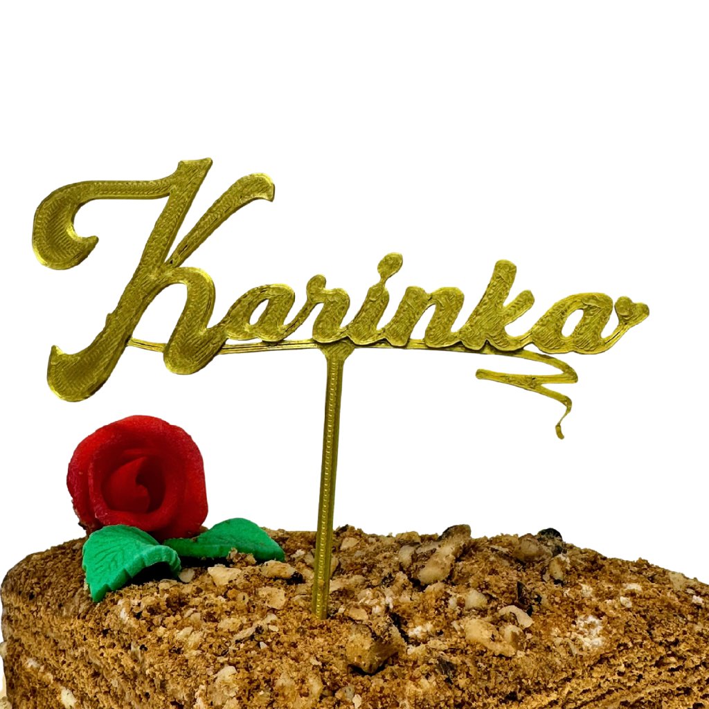 Dortová dekorace - zápich SE JMÉNEM OSLAVENCE - s podtržením šířka 15-18 cm ✅ nejedlá dekorace na dort