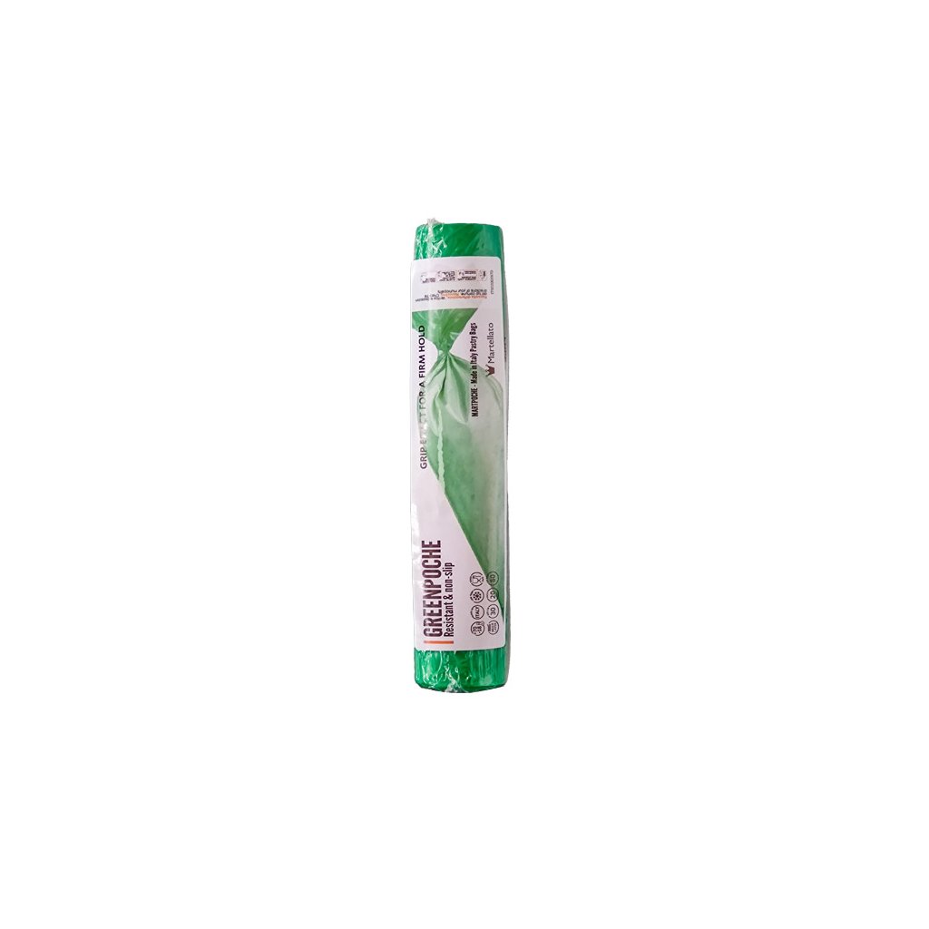 Objevte sílu a pohodlí GreenPoche. Jeho vícevrstvá struktura zaručuje maximální spolehlivost pro jakýkoli druh náplně. Inovativní povrchová úprava „grip efect“ vám poskytne výjimečnou kontrolu i s mokrýma rukama nebo mastnou náplní, přičemž zachovává pevný a bezpečný úchop za všech okolností. Splňuje nejvyšší bezpečnostní standardy, díky výrazné barvě, která umožňuje nalezení odstřižené špičky v používané hmotě.