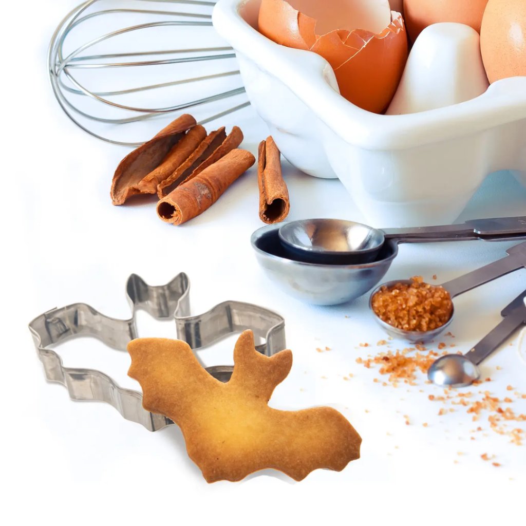 Díky nerezové vykrajovačce NETOPÝR od českého výrobce své domácí sušenky či perníčky hladce vykrojíte a dáte péct. Podzimní, halloweenský tvar vykrajovačky pro vaše originální domácí sušenky. Pak už stačí jen zdobit bílkovou polevou, čokoládou, nebo použít dekorativní válečky a razítka z našeho sortimentu.