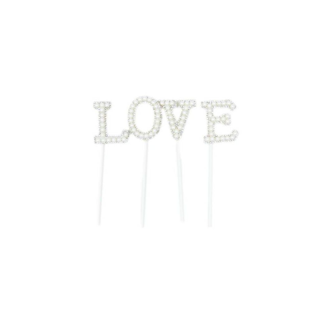 Zápich do dortu bílý s perlami LOVE (4 ks) ▹