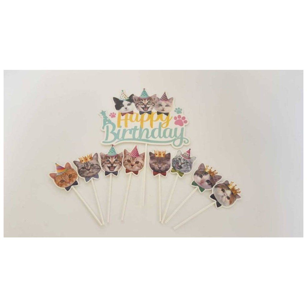 Zápich do dortu Happy Birthday s kočkami (9 ks) ▹