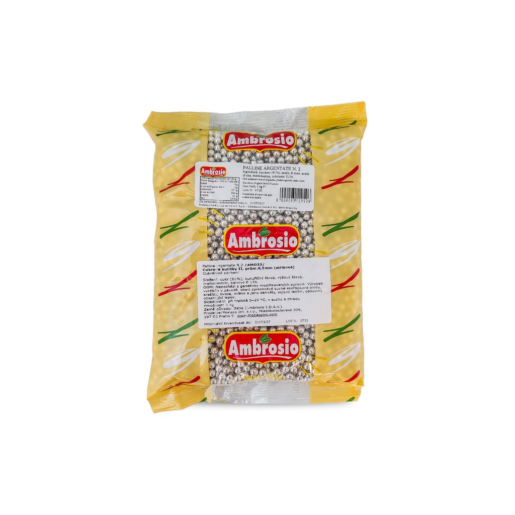 Cukrové kuličky II stříbrné, Ambrosio 1 kg/sáček