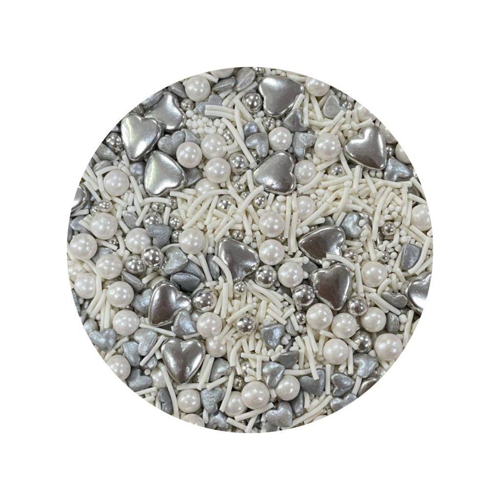 Cukrové zdobení bílé a stříbrné Silver Wedding Cocktail (50 g) ▹