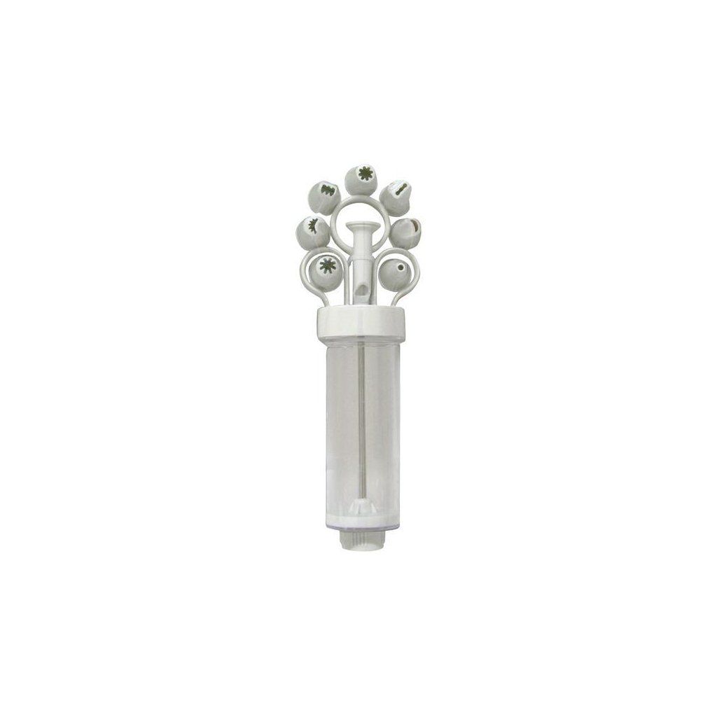 Zdobička dortů se skládá z dávkovače ve tvaru injekce a 8 různých nástavců. Vhodné pro přípravu sušenek a zdobení dortů. Objem zdobičky - 150 ml. Materiál - plast, barva bílá.